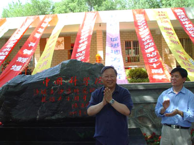 路甬祥院长、李家洋副院长为沙坡头站50周年纪念碑揭幕。 6月7日,路甬祥院长赴宁夏回族自治区中卫市视察了中科院沙坡头沙漠研究实验站。在包兰铁路固沙防护体系现场听取了实验站站长李新荣的工作汇报。路甬祥院长、李家洋副院长与宁夏回族自治区党委书记陈建国、自治区主席马启智一起为沙坡头试验站建站50周年纪念碑揭幕。