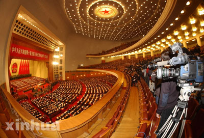 3月5日,第十届全国人民代表大会第一次会议在北京人民大会堂开幕。图为记者们聚焦大会。 新华社记者 张领 摄