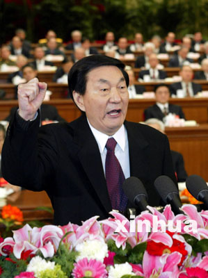 3月5日上午,第十届全国人民代表大会第一次会议在北京人民大会堂开幕。国务院总理朱镕基作政府工作报告。 新华社记者 马占成 摄