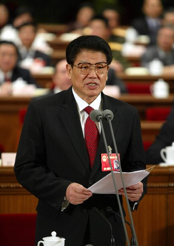 李铁映主持十届人大一次会议第二次全体会议