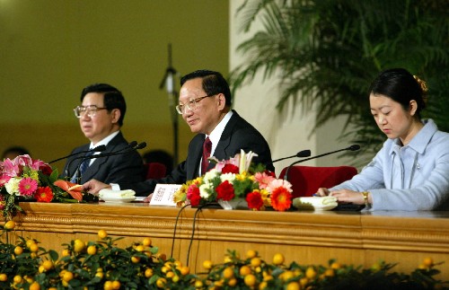 新华社北京2003年3月6日电 3月6日,十届全国人大一次会议在北京人民大会堂举行记者招待会,邀请外交部长唐家璇回答记者提问。新华社记者 饶爱民 摄