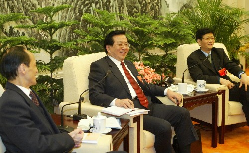 新华社北京2003年3月6日电 3月6日,中共中央政治局常委、书记处书记曾庆红参加江西代表团审议政府工作报告、计划报告、预算报告和国务院机构改革方案。新华社记者 李学仁 摄