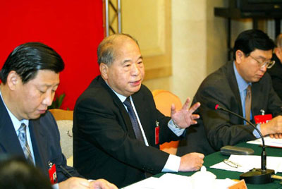 11月10日,尉健行同志参加十六大浙江代表团讨论并作了发言。新华社记者樊如钧摄