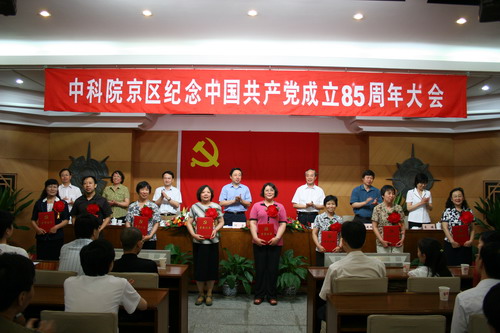 中科院京区召开纪念中国共产党成立85周年大会 根据“中国科学院党组关于中国共产党成立85周年纪念活动的通知”的安排,6月29日上午,中国科学院北京分院党组、京区党委召开京区纪念中国共产党成立85周年大会。院属京区党委委员、京区纪委委员,院团委委员,京区院属单位党办主任、党务主管、院各民主党派负责人、20年以上老党务工作者、新党员代表以及北京分院的部分同志共计300余人参加了会议。