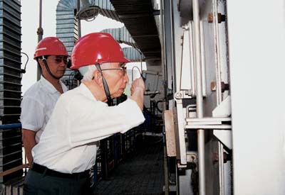 1998年下半年,侯老参加了国家经贸委和中国工程院开展的“企业技术创新院士行”活动,当时侯老已是八十六岁的高龄,但在考察过程中,他一直和大家一起爬塔台、看设备。其他同志都劝侯老不必要亲自爬上爬下,但他坚持让秘书搀扶着到工厂和建设单位的一线去现场会诊、与企业技术人员交流,让现场很多的年轻人都自叹弗如。