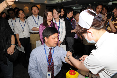 联想集团高级副总裁兼大中华和俄罗斯区总裁陈绍鹏为灾区人民献血