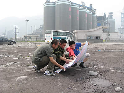 科研人员在汉旺镇与成都军区一起设计飞行路线