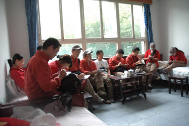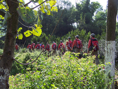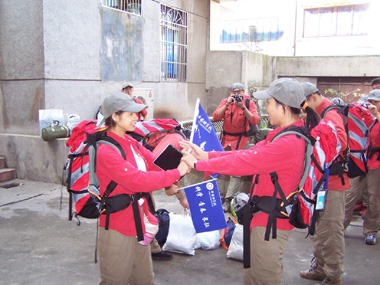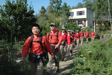 此次“重走长征路”活动已经进入第五天,今天是徒步重走长征路计划中路途最远、行程最紧的一天,队员们要从高坪徒步行走25公里山路抵达板桥。连续四天的奔波,今天的行程对队员们的体力提出了挑战。王敏是队员中身材最为单薄的一位,绵延起伏的盘山路使她几次几乎跟不上男队员的脚步,然而,一路上谁也没有听到她叫一声苦唤一声累,咬着牙一直坚持着。不光是王敏,漫长而又富于起伏的山路对长期面对实验仪器、计算设备的队员们来说都不是轻易能够走下来的。来自植物所的队员李宇飞在昨天的行进中左脚脚筋被拉伤,但今天他还是按照既定的安排承担值日的职责,他的每一步都略带蹒跚;领队组成员、来自遥感中心地面站的孟阳右膝有旧伤,连续的行进使他旧伤复发,经过简单的处理后,拖着明显肿胀的右腿依然走在队伍当中。这是一只由来自科学院的青年人组成的队伍,也是一支顽强的队伍。活动总领队、来自京区党委宣传部的王健对记者说:“我们在出发之前都已经熟知,当年红军长征曾负重一夜急行80余华里。我们已经做好了充分的准备,何况我们今天面对的困难远远没有红军当年面对的大,我们也是一个团队,我们的力量可以战胜今天面对的困难。”