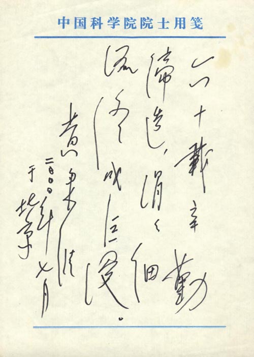 2000年为中国科学院南京地理与湖泊研究所成立60周年题词