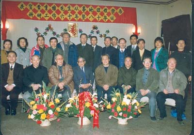 1993年庆贺黄秉维先生从事地理教学与科研工作六十年暨八十周年华诞会上与部分前来祝贺人士合影(左起前排孙枢院士、刘东生院士、叶连俊院士、黄秉维院士、孙鸿烈院士、陈述彭院士、江爱良教授、赵松乔教授,后排左起第七为徐冠华院士、第九为郑度院士)