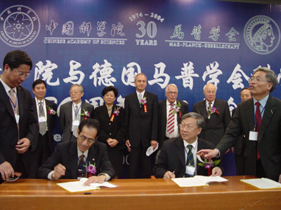 中国科学院路甬祥院长和国家基金委陈宜瑜主任签署旨在促进网络科学资源全球共享的《柏林宣言》