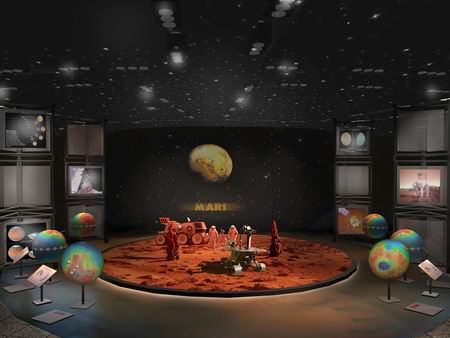 “科技创造未来”主题展将于5月18日在中华世纪坛正式开幕,为期一周。展览主要包括四大块,一是通过极具感染力的展板,系统展示科学技术的发展脉络,揭示人类在宇宙、地球自然系统、物质、生命等领域的认识水平,及概略介绍人类在物质变化、能源转换和信息控制三大基础技术领域的进展,以此帮助观众系统规整自己已有知识;二是通过公众更熟悉的诸如光、材料、卫星、生物技术、智能技术、能源等领域的实物模型展览,使观众在系统整理已知知识之后,对科技有更具体的了解;三是通过“神舟”三号展区、联想搭建的数字家庭以及主要由航空航天大学承建的火星登陆等三大场景,营造未来家庭,以及开拓未来生存空间的概念,烘托人类未来发展前景。四是将在报告厅邀请诺贝尔获奖者、Discovery节目制片人以及国内著名科学家现场解读科学。此次科技展不仅采用的展示手段形式多样、展品丰富,既有传统的展板,又有多媒体、实物模型、科学家雕像、模拟场景搭建等。而且经过精心设计和策划,一改过去科普展的传统风格。科技展在入口处设计制作了囊括科技史上做出过具有里程碑性质的重要贡献近一百位杰出科学家的头像的巨幅画面,以及展示科技发展水平的气势恢宏的图画;出口处悬挂近百台电脑显示屏,展示青少年用电脑绘画表达对未来的畅通想。此次科技展,无论是报告厅讲座主题还是主展厅展品,都让人耳目一新。主展厅内展品异彩纷呈,既有国际、国内高科技厂商实验室里的下一代高科技产品,又有代表未来发展方向的科学技术:处于国际领先地位的上海第三代同步辐射光源模型,能够实现“天地无缝连接”的存储转发通讯小卫星,代表未来生活特点的数字家庭模拟场景,功能强大、各具特色的最新一代机器人、机器蛇,描述六大科学体系的极具视觉冲击力的巨幅科学展板,以及用虚拟手段完美再现登陆火星的场景等。