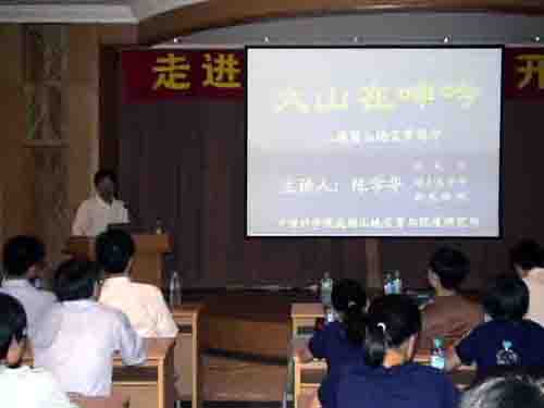这次活动利用成都分院系统各单位科普资源的优势力量,将科普宣讲和参观四川省命名的青少年科普教育基地相结合,邀请了华阳中学的170余名师生走进科学城,聆听成都分院青联副主席、山地所所长助理、研究员陈学华做的题为《大山在呻吟》的科普报告,随后,参观了成都生物所动植物标本馆、成都化学所测试中心和文献情报中心。同学们在开放式科研环境中亲身体验、感受科学,加深了对科学的了解和认识,激发了同学们对科技知识的热爱和兴趣。