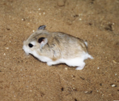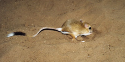 浑善达克沙地另外一种重要的鼠类为三趾跳鼠,三趾跳鼠个体较大,略大于褐家鼠。三趾跳鼠具有一对修长而强壮有力的后腿和一条长长的尾巴,三趾跳鼠的主要运动方式为跳跃,而长尾正是跳跃行进中不可缺少的平衡器,起着控制和调整跳跃方向的作用。三趾跳鼠具有三个发达的趾,因此称之为三趾跳鼠。由于具有发达的后肢,三趾跳鼠具有较大的活动半径,其行进方式主要是以后肢跳跃行进。