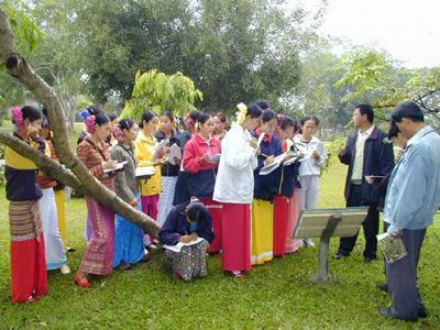 西双版纳热带植物园的科普导游在接受植物学家的版纳-科普导游培训。