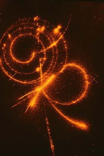 日内瓦欧洲粒子物理研究所拍摄的离子-介子-电子衰变链试验照片。