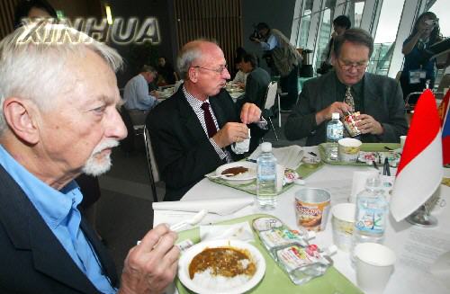 10月14日,几名宇航员在日本东京品尝太空食品。