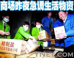 昨晚,长安商场的员工正在分配刚调集来的大批食盐 摄影/记者贾婷