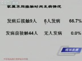 下面介绍的就是该病人非典病毒传播的传播链。该病人在其家属中的传播率为66.7%(2/3)。同时,除造成家属传播外,又造成医院同房病友及相关医护人员的传播。总共造成18个非典病例。其中密切接触者共有6人发病,并且发病者有和该病人发病期接触史。