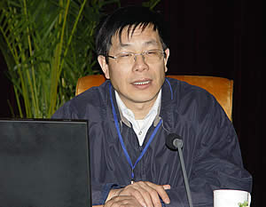 图为中国科学院国有资产经营有限公司总经理邓麦村作题为“关于全院高技术产业与经营性国有资产管理的报告”