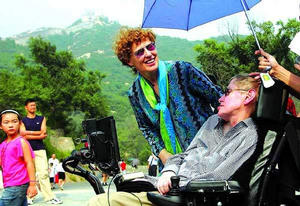 《北京晨报》记者报道 昨天下午两点半,霍金来到了17年前曾经登过的八达岭长城脚下。孰料一波三折,按最初的安排,准备派人把坐在轮椅上的霍金抬上长城,但由于长城陡峭,霍金夫人认为这样不太安全,这种方案因此被否决,霍金坐在轮椅上,恋恋不舍准备离去。