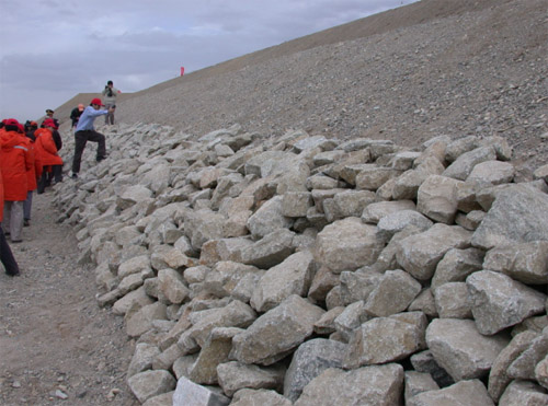 在全线高含冰量路段广泛使用抛石、碎石对流换热结构(抛石、碎石通风)路基,抛石、碎石护坡路基,保温护道、多种措施联合等积极的方法,在高温极不稳定区的高含冰量路段,采用旱桥通过。目前还正在努力推广热棒、遮阳棚、人工制冷等措施的使用。