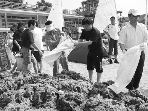 此外,作为驻青科研单位,海洋所第一时间发动全所师生为清除浒苔献计献策。在所党委副书记、副所长王启尧的带领下,全所师生利用午休、周末休息时间多次到青岛第一海水浴场,展开了义务清除浒苔的志愿活动。师生们表示:“我为奥运添光彩,要体现在实际行动中。”