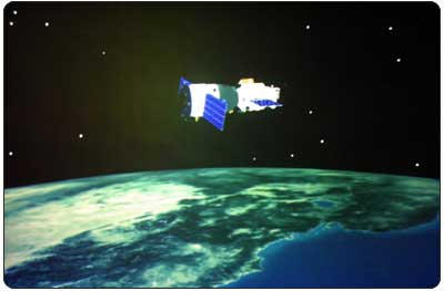 “神舟”三号无人飞船按预定轨道飞行正常,已环绕地球飞行30圈,空间科学实验进展顺利。 这是飞船飞行实况模拟图像。