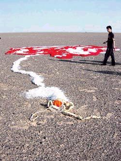 本月初,在我国第二大沙漠——内蒙古的巴丹吉林沙漠深处的茫茫戈壁滩上,“神舟”飞船回收着陆分系统进行了最后一次空投试验。