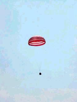 这次试验,除进行正常的产品批次抽检、考核分系统工作性能、积累可靠性数据外,还进行了飞船返回舱主伞一次开伞、主伞部分伞绳断开等故障状态模拟试验,考核一旦出现意外情况主伞是否失效,以及主伞失效后能否即时切换到备份伞系统等等。这次共进行了5个架次、不同状态的空投试验,均取得了圆满成功。