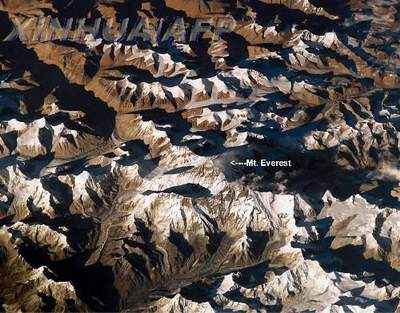美国国家航空航天局2003年12月29日发布的这张照片显示的是从太空拍摄的喜马拉雅山脉地区,图中白字标注的是世界第一高峰——珠穆朗玛峰。这张照片由国际空间站的宇航员在2003年11月拍摄。多年来,有关珠峰的照片数不胜数,这张从太空观看它丰姿的照片别有味道。新华社/法新