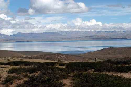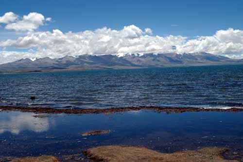圣湖玛旁雍错,远处为纳木纳尼雪峰。