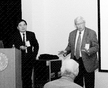 2004年埃特尔教授(右)带领国际评估小组到大连化物所对中科院—马普“催化纳米技术”伙伴小组进行现场评估,听取伙伴小组中方组长包信和研究员(左)的工作汇报。 瑞典皇家科学院10月10日宣布,将2007年诺贝尔化学奖授予德国马普学会弗里茨-哈伯(Fritz-Haber)研究所的格哈德·埃特尔(Gerhard Ertl)教授,以表彰他在固体表面化学过程研究领域作出的开拓性成就。