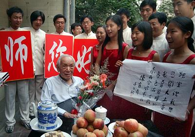 数学大师陈省身与学生们在一起。