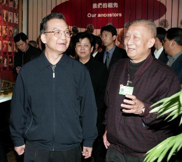 温家宝总理到古脊椎动物与古人类研究所视察工作