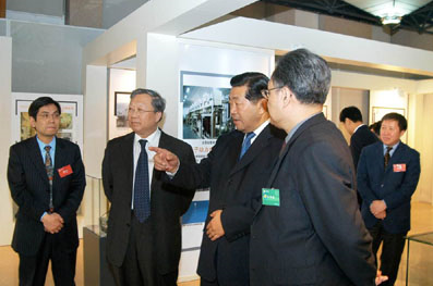 1月14日,中央政治局常委贾庆林同志在全国人大常委会副委员长、中国科学院院长路甬祥等院领导的陪同下视察中国科学院知识创新成就展。