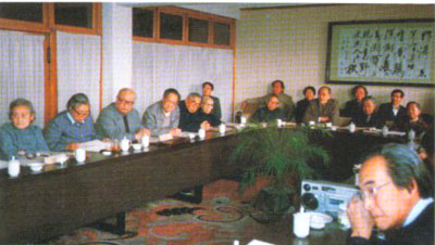 中共中央总书记江泽民与出席第六次学部委员大会的部分学部委员在中南海怀仁堂座谈。