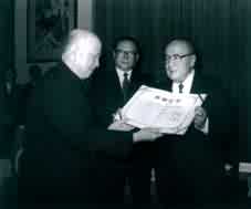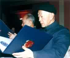 1993年10月9日,国务院决定将中国科学院学部委员改称为中国科学院院士。图为(右起)黄昆、程开甲院士接受证书。