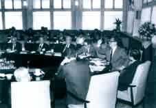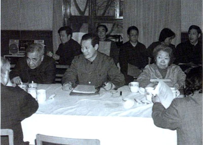 1981年由谢希德等89名学部委员提出建议,经国务院批准,设立了面向全国的中国科学院自然科学基金。图为(左起)卢嘉锡、严东生和谢希德在主持基金委员会会议。