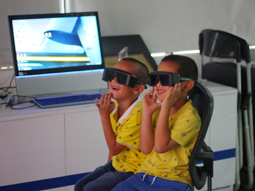 深圳先进院可视计算实验室里进行体验的小朋友们