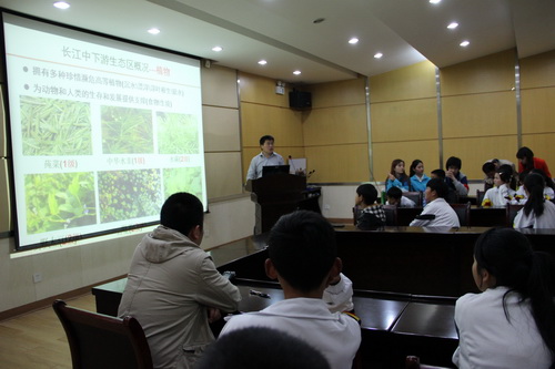 此次活动共安排了四大内容。一是生物多样性保护教育活动。首先由洞庭湖站副研究员李峰做了题为“长江中下游湿地生物多样性及保护”的报告,详细介绍了长江中下游地区湿地生物多样性的现状、多样性丧失的原因及保护对策。随后在站相关人员的带领下,参观了湿地标本馆,重点了解了洞庭湖湿地生物多样性的现状,增强了青少年对生物多样性的保护意识;二是在站科研人员的带领下参观了洞庭湖站综合试验场,详细听取了站科研人员有关科学实验设计、循环湿地农业、湿地恢复及湿地资源利用等知识的讲解,使青少年认识湿地的重要功能和科学家在湿地保护中所做的努力;三是组织学生观看了越冬候鸟小白额雁迁徙的4D电影,使青少年学生认识候鸟的迁飞历程,培养青少年爱鸟、护鸟的意识;四是讲解了麋鹿的历史和保护现状,并介绍了麋鹿在洞庭湖的分布情况,通过喂食麋鹿,使学生了解了生境多样性保护的意义,增强了青少年学生在野生动物保护中的参与意识。