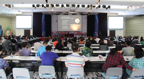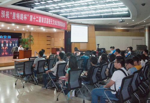 与此同时,紫金山天文台科普部主任张旸来到南京科技馆报告厅,与南京地质古生物所冯伟民、南京中山植物园汤诗杰两位专家一起,以生命的起源和发展以及生物多样性保护为主题,一同为两百多名听众献上三场科普报告。张旸的报告以开普勒空间望远镜及系外行星搜索为主题,向听众介绍天文学视角下的生命及搜索问题。报告回顾了当前系外行星搜索的主要进展、搜索系外行星的主要方法,重点介绍了开普勒望远镜的设计、一些有趣的发现、宜居带行星的概念、开普勒望远镜的K2计划等,向听众展现出太阳系外其它行星的奇妙世界,赢得现场听众的热烈欢迎。