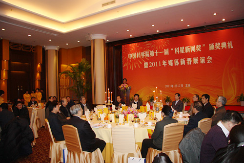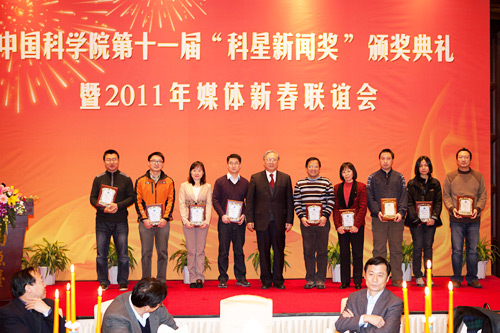 1月17日,中国科学院第十一届“科星新闻奖”在京颁发。中国科学院院长、党组书记路甬祥,院党组副书记方新,中纪委驻中科院纪检组组长李志刚,中国科协副主席赵忠贤,中科院副秘书长潘教峰,以及首都新闻单位的有关领导出席大会并为获奖代表颁奖。中国科学院新闻发言人、办公厅(党组办)主任李婷主持大会。获奖记者代表、新闻单位代表近100人参加了颁奖典礼。