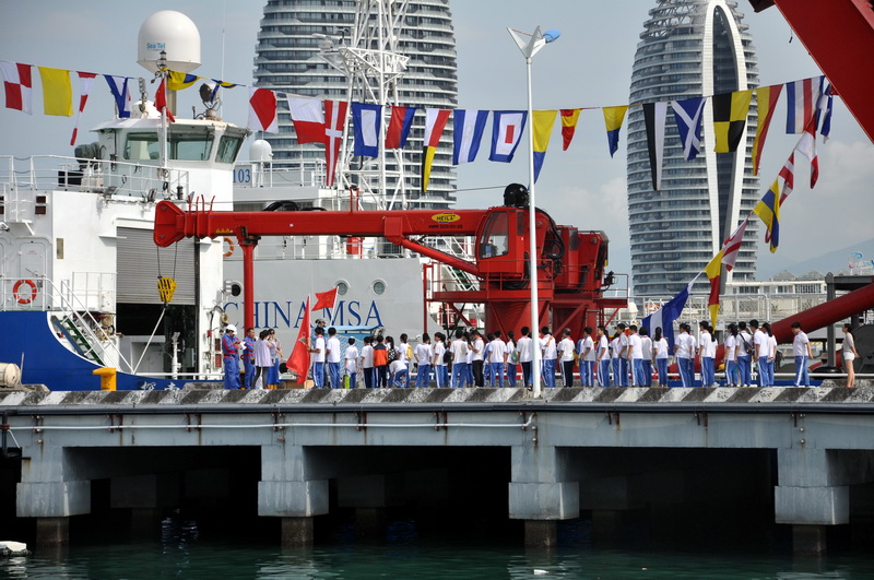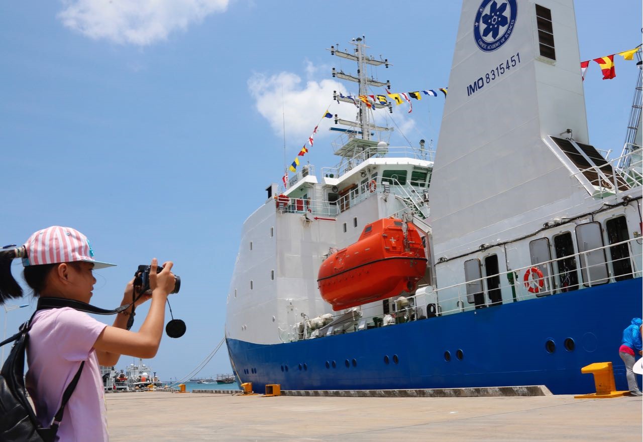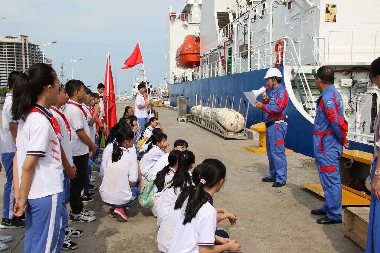 5月14日,中国科学院深海科学与工程研究所举行大型公益性科普活动,向社会免费开放参观“探索一号”科考船,三亚当地市民和中小学生踊跃报名参加,300多名幸运儿获得机会登船参观,船长、部分船员和驻船科学家们为参观者做了细致的讲解。