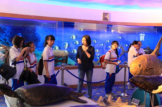 市民在参观海洋生物标本馆的同时,自己动手制作海洋生物标本。学生和市民以互动方式参加了海洋知识有奖问答,答题正确者获得了具有南海所特色的小奖品。