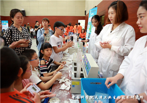 5月20日,在全国科技活动周期间,中国科学院天津工业生物技术研究所举行了以“探索塑造未来”为主题的公众科学日活动,开展了科普讲座、创意科学实验、工业生物技术展示观摩、实验室体验参观等一系列丰富多彩的活动环节。近400名来自天津多所学校的青少年学生和社会公众便如约而来,与高科技成果、高端仪器装备和高层次科学家零距离接触,充分体验工业生物前沿科学,感悟探究求索的科学精神。