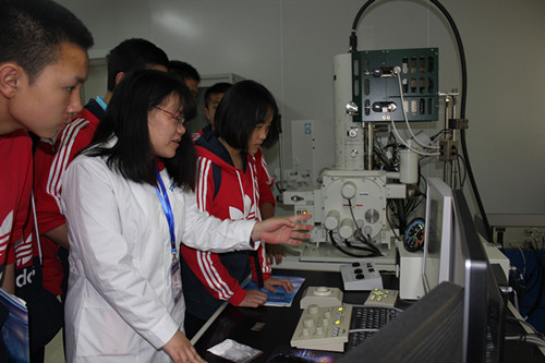 工作人员讲解实验设备