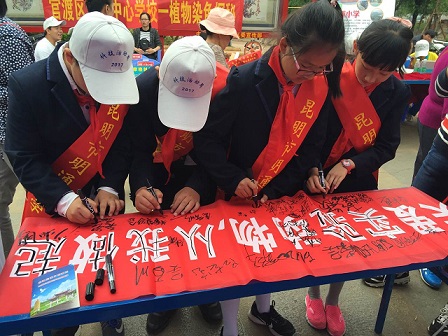 在活动现场,中科院昆明灵长类研究中心副主任、云南省实验动物学会秘书长吕龙宝为在场人员进行实验动物科普宣传讲解,带领大家走进实验动物的科学世界,了解实验动物为人类健康作出的贡献,使民众树立起保护和关爱实验动物的意识,鼓励市民积极投身到关爱实验动物的公益活动中来。此外,昆明动物所准备的“关爱实验动物,从我做起”的签名活动也吸引了广大市民参加,在群众中获得了热烈反响。