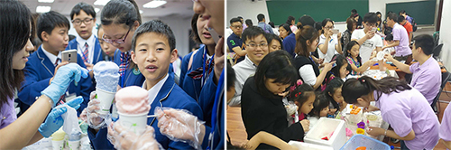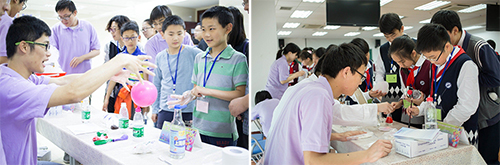 科普专题讲座结束后,同学们在志愿者的引导下参观了个6个趣味实验展厅,展厅里呈现一如既往的火爆,超过1000名公众参加了相关活动。100多位志愿者准备了60多个化学实验,液氮冰淇淋、泡泡火山、彩色鸡尾酒、酷炫风暴瓶……这些实验现象明显,要么颜色变化,要么形态变化,但总是能给予参与活动的孩子们意想不到的结果,加上志愿者们耐心到位的讲解,孩子们无不感叹化学的神秘和奇妙,在展位前久久不愿离去。在活动即将结束时,不少孩子们才开始意识到他们才玩了不到三分之一的趣味实验,这时候的他们一边遗憾地望着忙碌收拾的志愿者,一边喃喃自语:明年一定还要来……