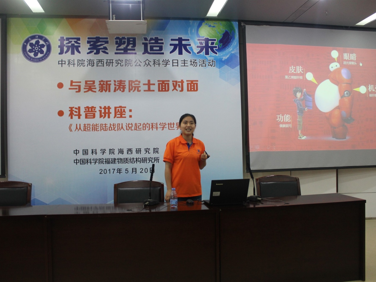 在化学楼4楼报告厅,在站博士后付蕾用科普讲座《从超能陆战队说起的科学世界》为孩子们从科技的视角解释了“大白”全身的科技元素——机器人制造、人工智能和智能医疗,介绍电影中出现的个人飞行装置等科学技术装备、碳纤维材料和医疗保健助手等在我们现实生活中的真实存在,为孩子们介绍了最前沿的科技资讯。